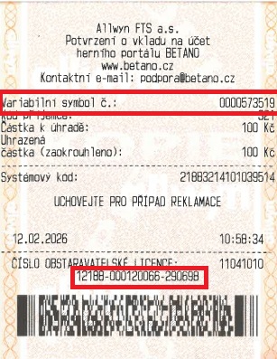 Číslo potvrzení o vkladu najdete nad čárovým kódem.