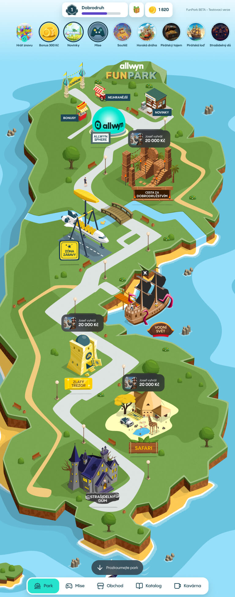 FunPark je ostrov, který skrývá spoustu her rozdělených podle témat. Hrát mohou všichni registrovaní zákazníci.