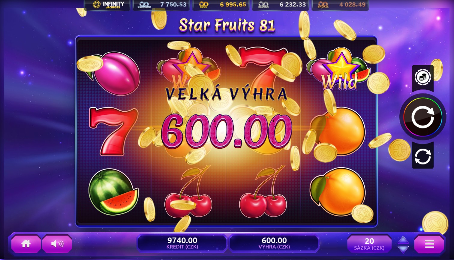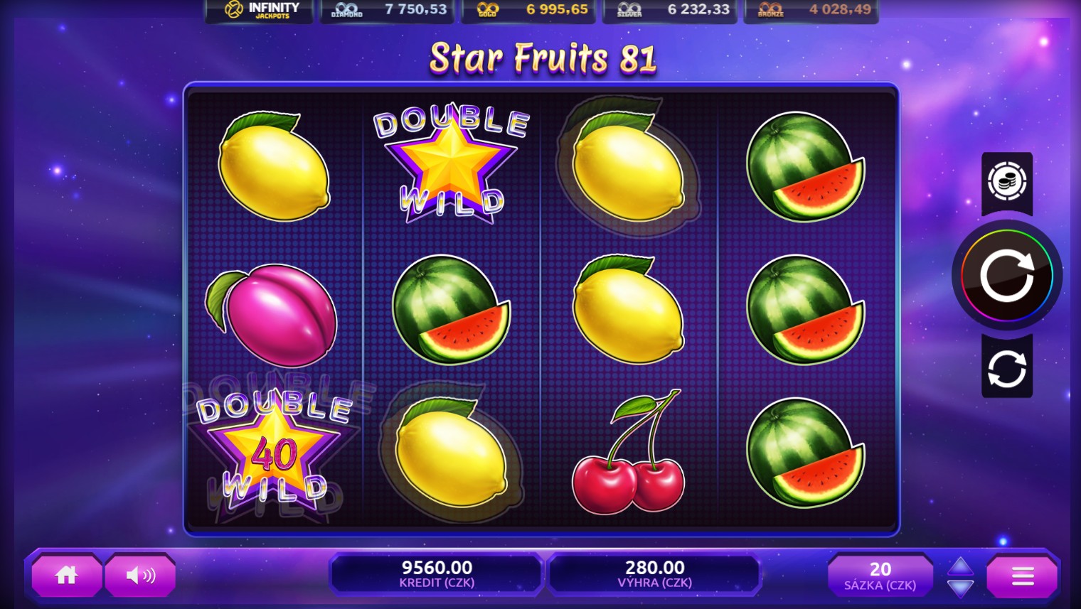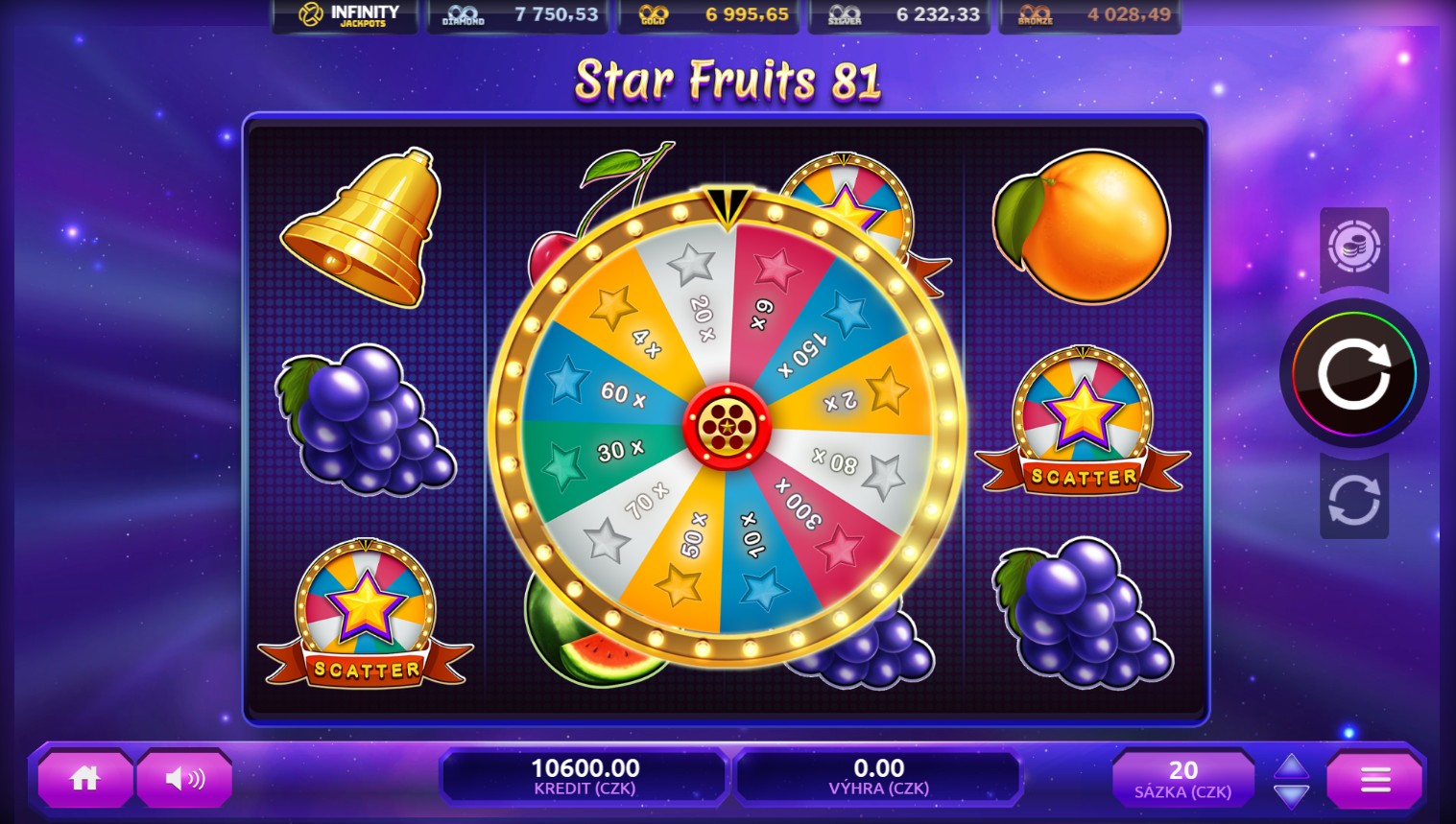 Stejně jako v původní verzi casino hry i v Star Fruits 81 se střední volatilitou jste automaticky ve hře i za minimální možnou sázku o nabité Infinity jackpoty se 4 levely!