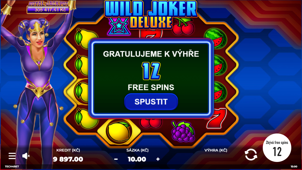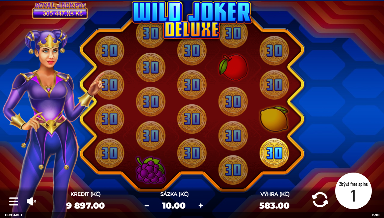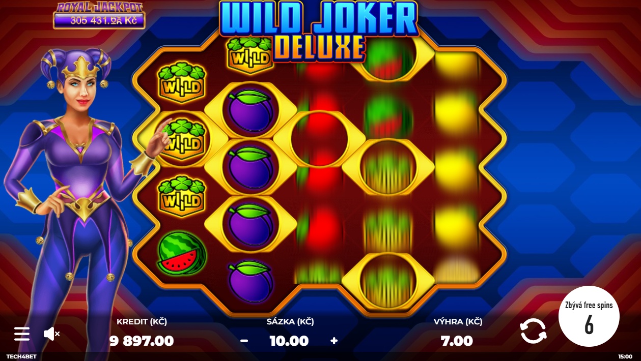 Užijte si hraní na Sazka Hrách od Allwynu s tradičními ovocnými symboly a originálním pojetím válců. Výherní automat Wild Joker Deluxe nabízí vysoké RTP 96 %.